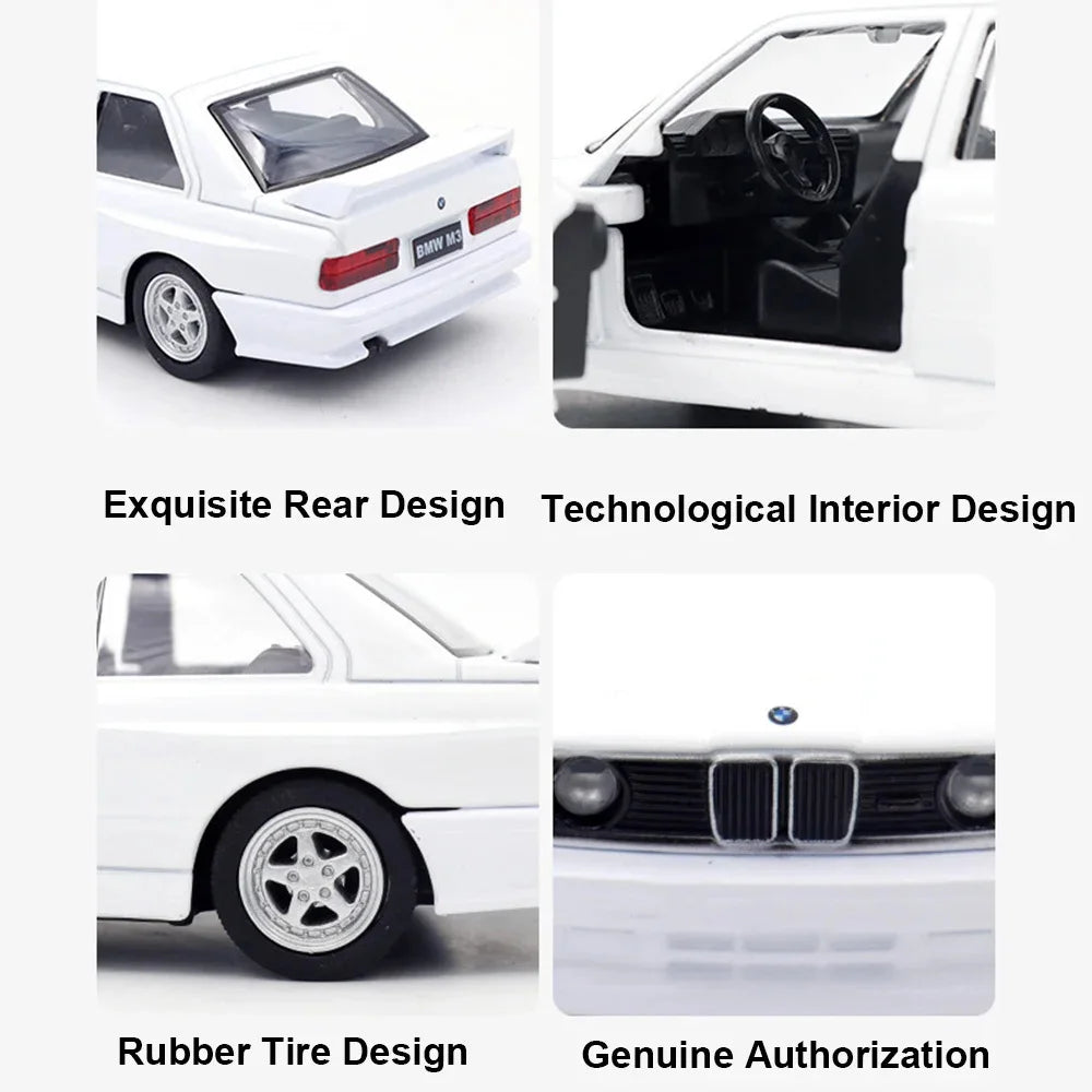 1/36 BMW M3 1987 Alloy Toys Car Model Metal Diecasts Toy Vehicles Authentic Exquisite Interior Pull Back 2 Door Opened Kids Gift