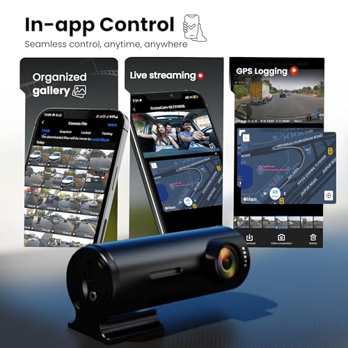 - ✅ In-app control: Control your dash camera with ease using the CruiseCam X1 in-app control. This car dashcam offers seamless operation and customization, making it the most user-friendly dash cam for your car.