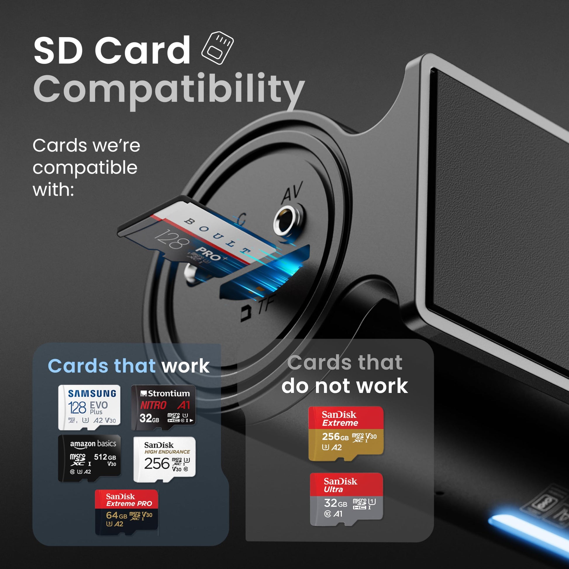 - ✅ SD Card: Store hours of footage with the SD card in CruiseCam X1. This car dashcam supports large storage, ensuring you never miss a moment on the road, perfect for lengthy trips.