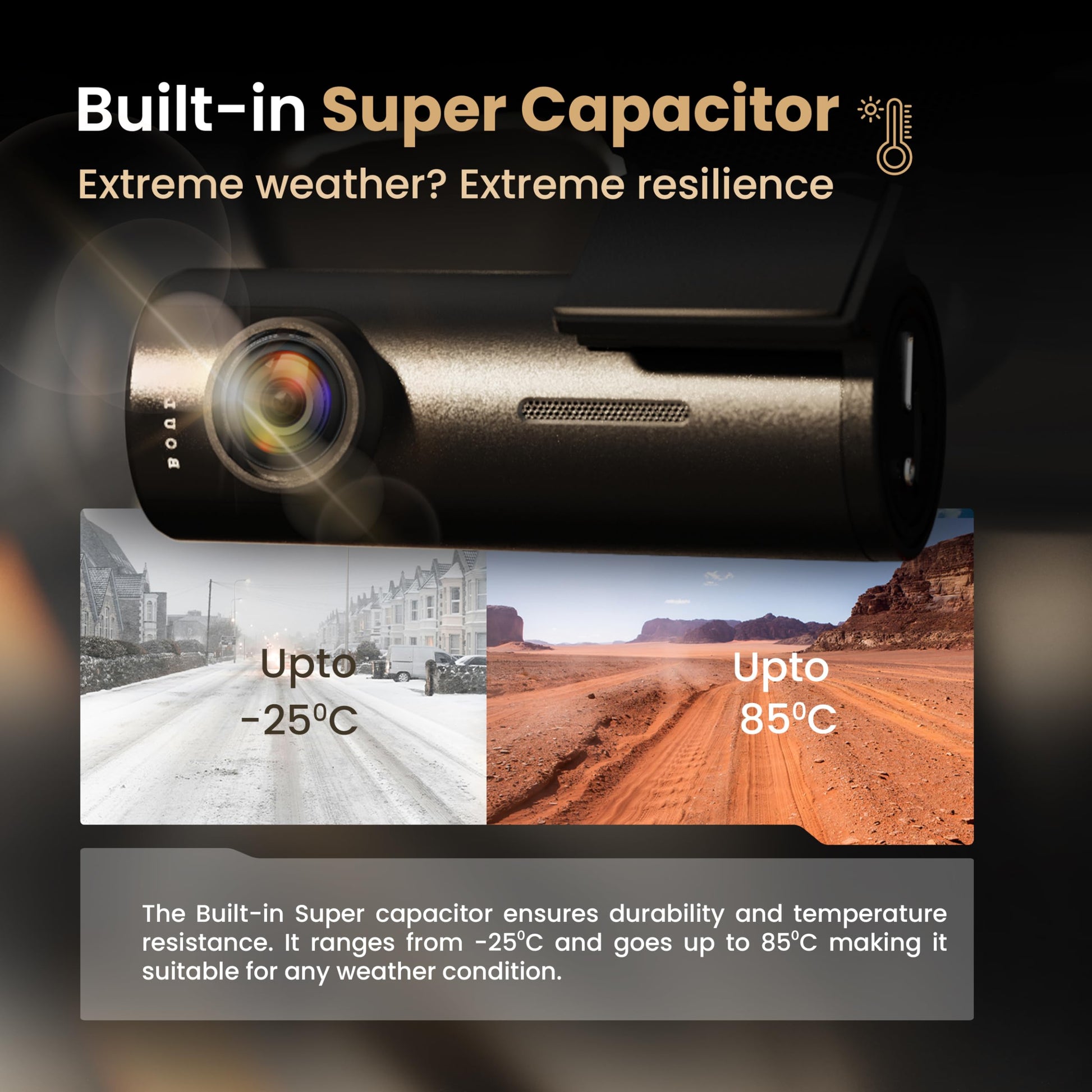 - ✅ Built-in Super Capacitor: With a built-in super capacitor, CruiseCam X1 withstands extreme temperatures, ensuring reliable performance. Ideal for the demanding conditions of a dash camera for car front and rear.