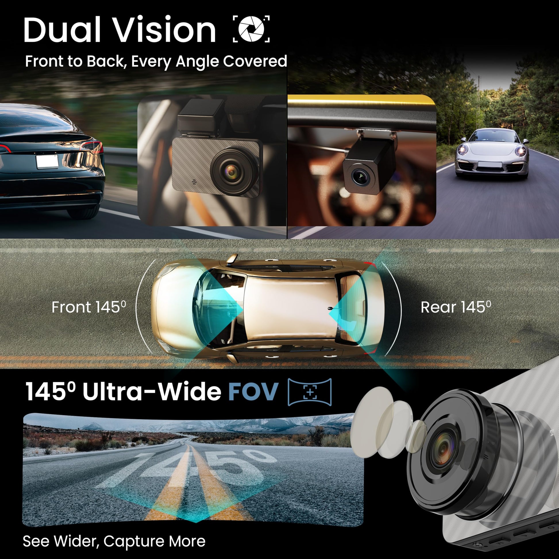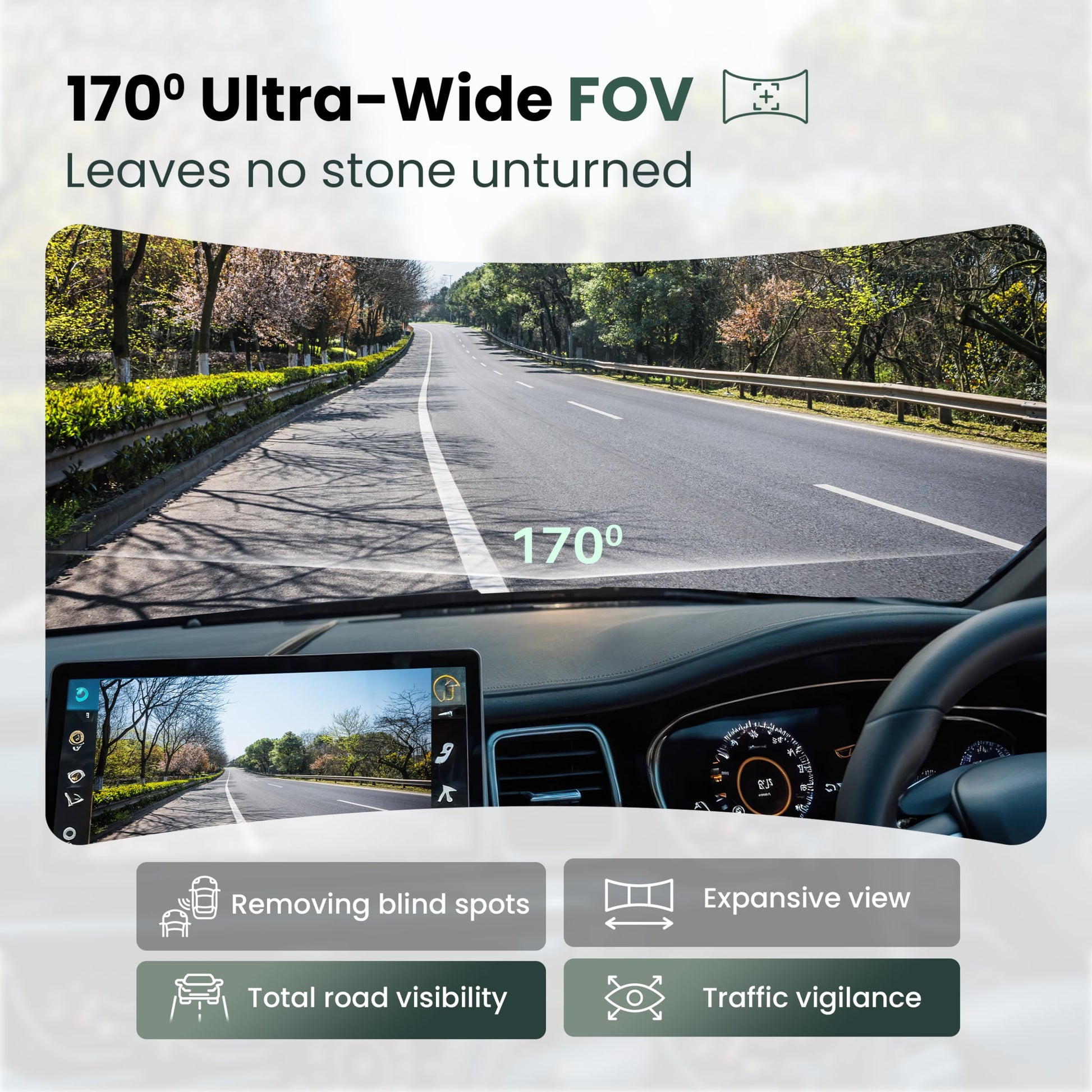 - ✅ 170 Degree Ultra wide FOV: CruiseCam X1 boasts a 170-degree ultra-wide FOV, ensuring nothing goes unnoticed. This car dash camera provides extensive coverage for front and rear, ideal for any driving scenario.