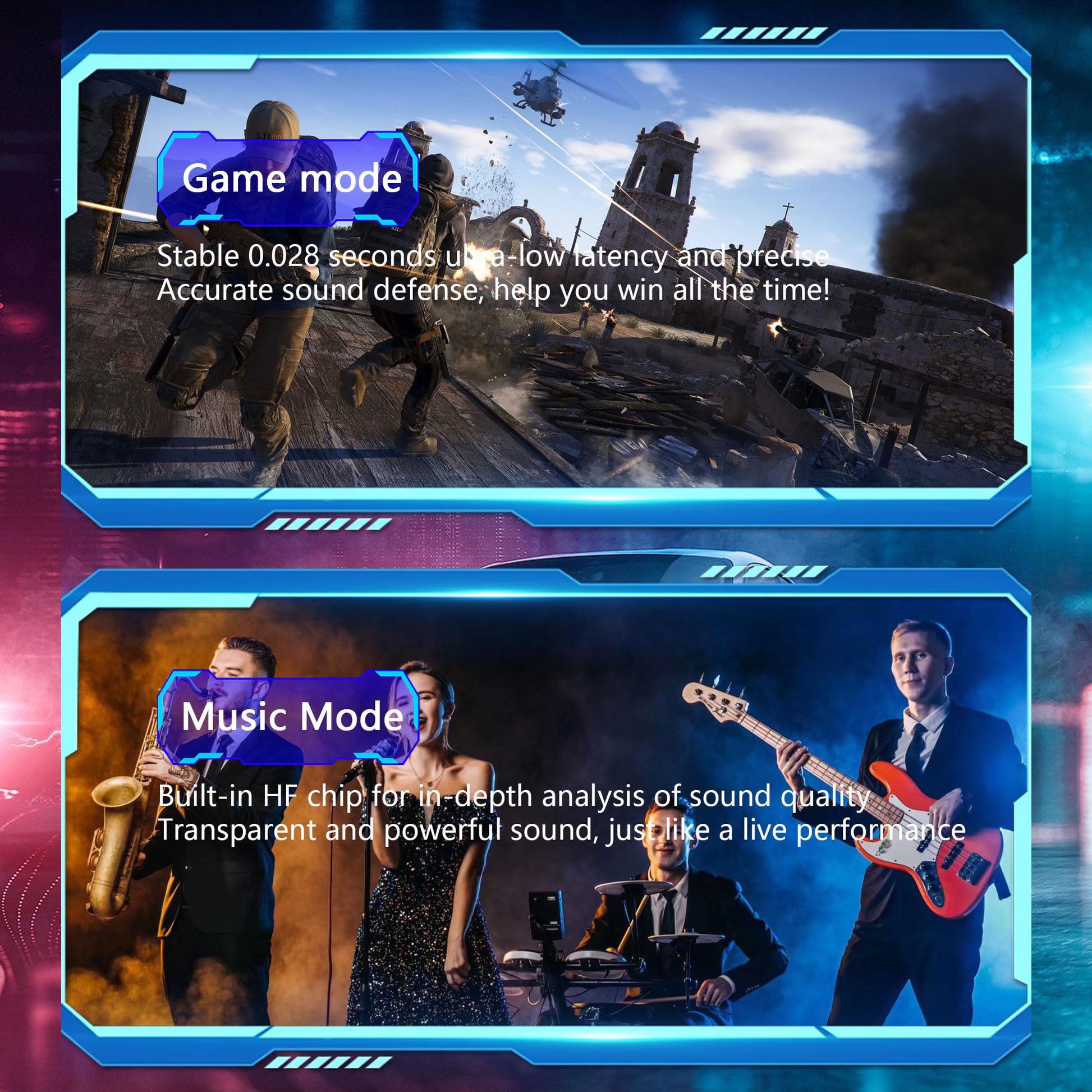 - 🎮【Gaming Earbuds】Game/music dual mode independent switching, combined with EQ digital algorithms to achieve the two sound modes, the game and music freely switch song, game a machine to handle.
