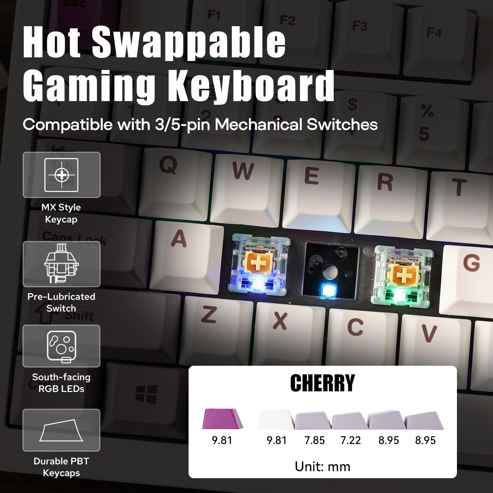 - 【Full Key Hot-Swap Socket & Vibrant 16.8M RGB Illumination】The DynaTab 75X features hot-swappable switch sockets, which allows the user to simply change the mechanical switches without having to buy a whole new keyboard! Simply plug in the desired switch, and you can get the exact typing feel and sound that you want with your new mechanical switch - all without having to solder anything. Engage in the dynamic glow of the DynaTab 75X's RGB backlit, which presents a rich spectrum of 16.8 million colours for a personalised typing environment. Tailor the light patterns to your preferences and create a desktop atmosphere that adapts to your mood.