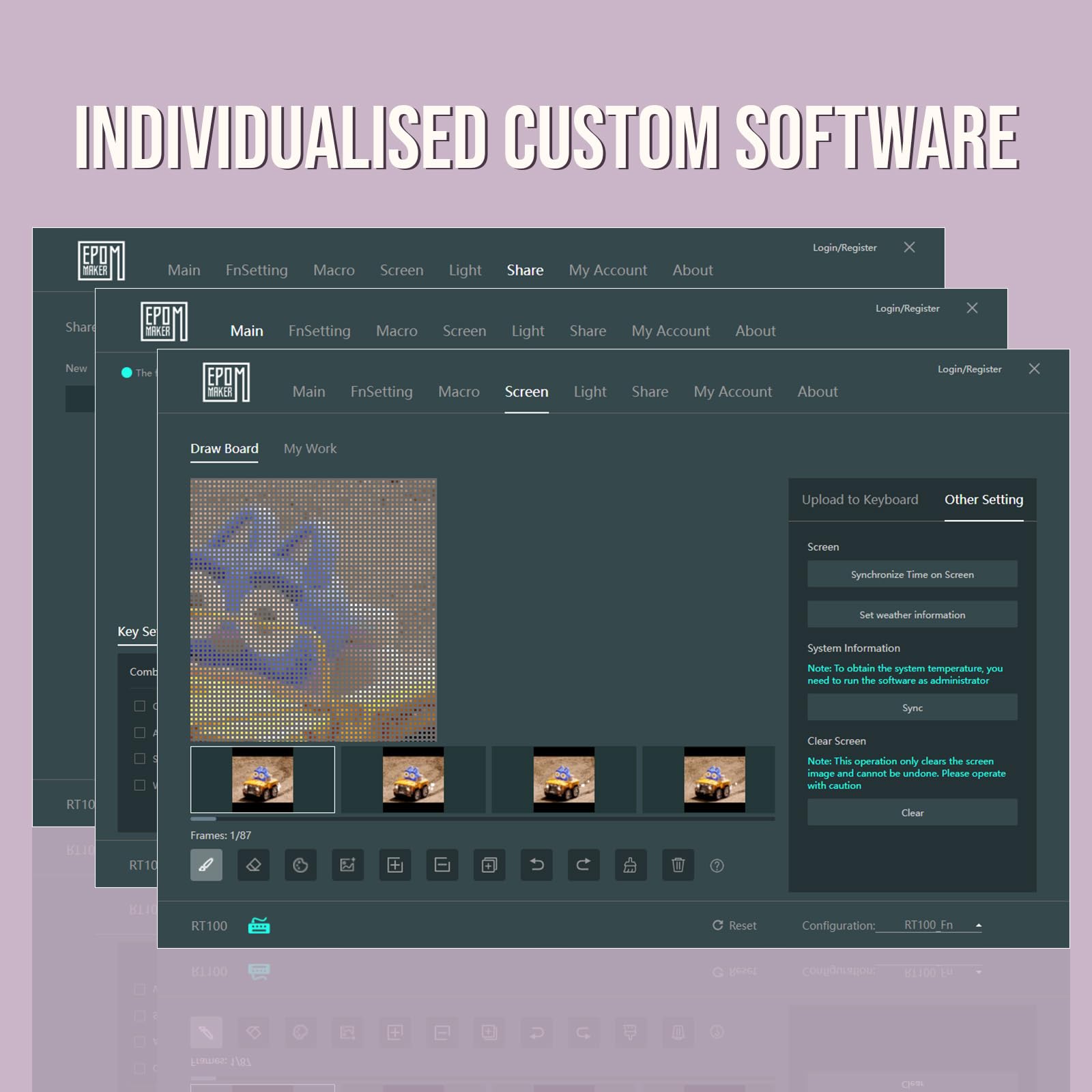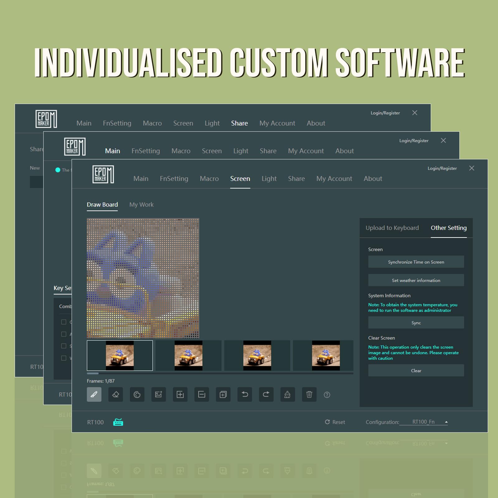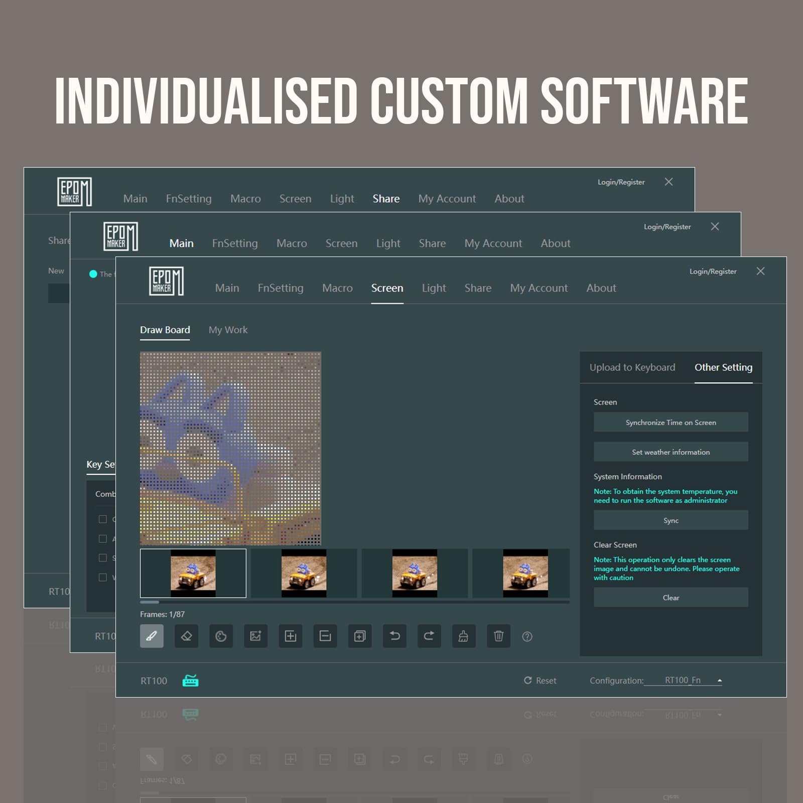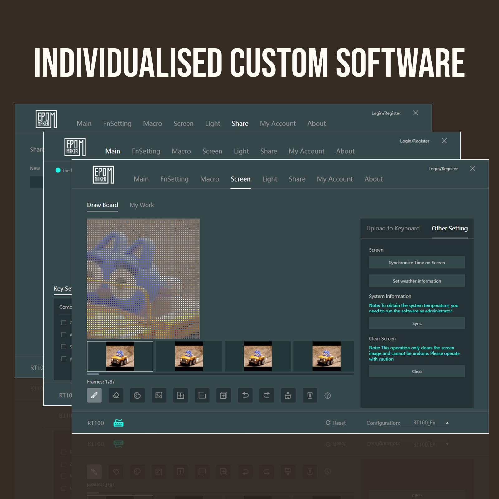 - Exclusive Detachable Smart TFT-LCD Display】Are you an experienced keyboard hobbyist wishing for a fully functional and highly enjoyable keyboard beyond entry-level? Then the newly launched retro-style EPOMAKER RT100 keyboard could be a great match which featuring an innovative customizable smart LCD display and a knob. The highly enjoyable mini display is great fun to play with as it can serve as a smartwatch with date and time, weather forecast, keyboard battery level, or something else you wish for with settings and programming.