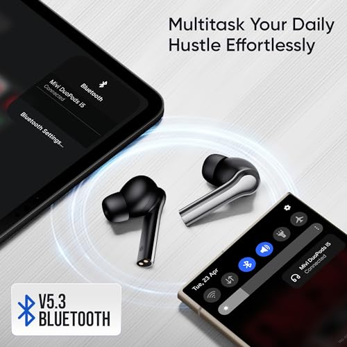 - Swift Charge Technology: The DuoPods come with Type C charging allowing you to get 500 mins of playtime in just 10 minutes of charging. They offer 45+ Hours of combined playtime on a single charge and 8.5 hours of on-bud time.