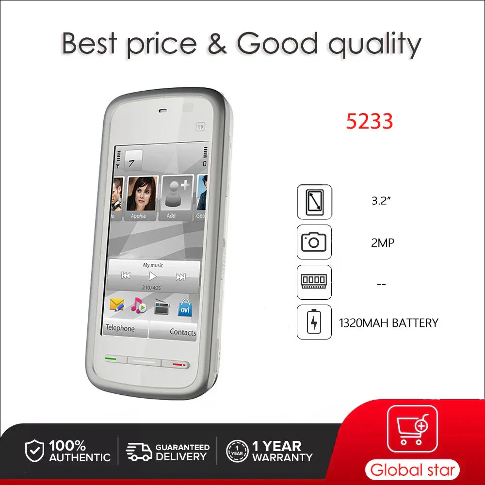 Entertainment & Communication Made Easy: The Nokia 5233 is designed for users who want a budget-friendly touchscreen smartphone with all the essentials for entertainment, connectivity, and communication. Whether you’re enjoying music, capturing photos, or staying connected through calls and social media, the Nokia 5233 delivers a reliable and enjoyable experience. With its expandable storage, 3G connectivity, and multimedia features, it's the perfect device for users who enjoy a bit of everything in a compact and easy-to-use package.