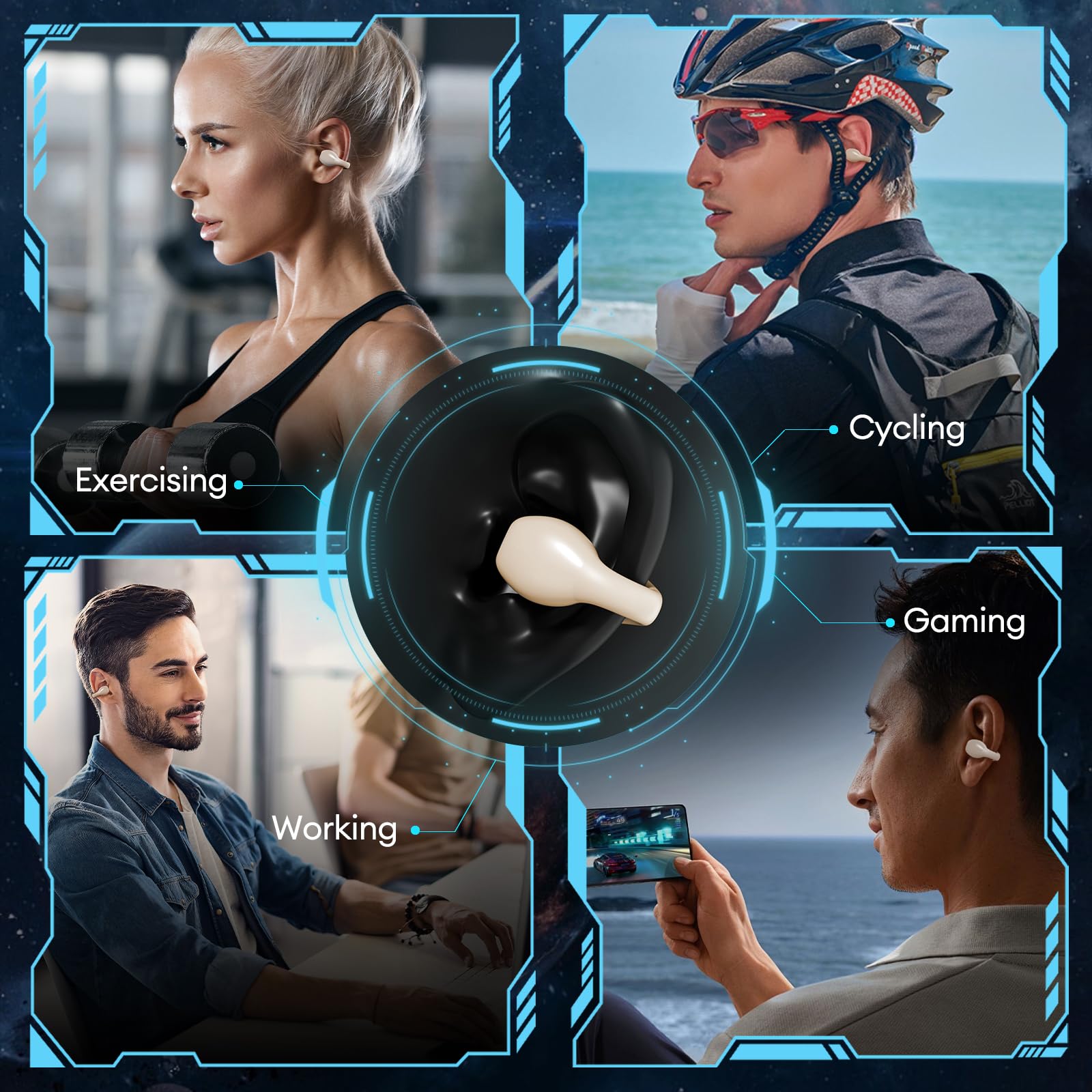 - Bluetooth 5.4 ultra-low latency & Clear Call:Features with the advanced Bluetooth 5.4 technology and use 13mm double-layer diaphragm drivers, the wireless earbuds can provide powerful bass, clear midrange and bright treble, you can experience high-fidelity sound reproduction to enhance your music listening experience. In addition, the Bluetooth earphones are combined ENC noise cancelling mic ensuring you can be heard clearly even in noisy environment.